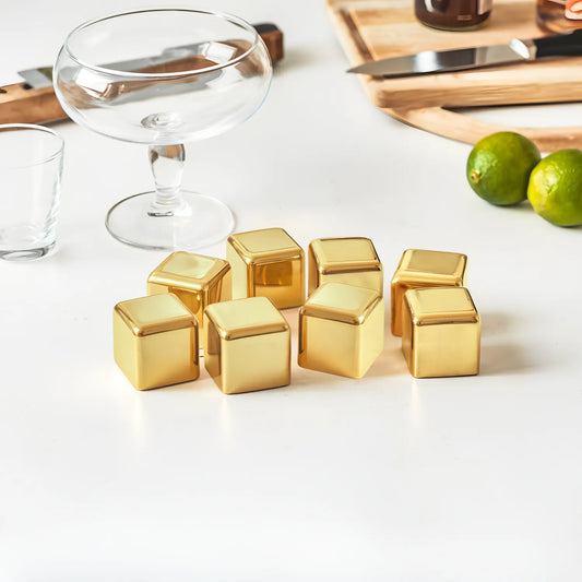 Gold Stainless Steel Ice Cube Set of 8