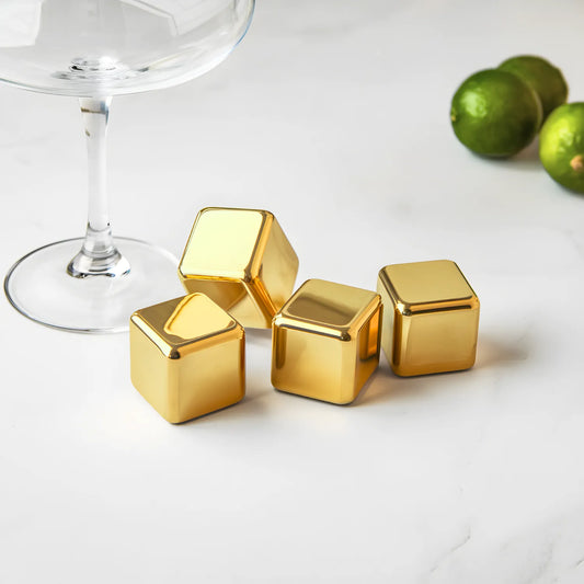 Gold Stainless Steel Ice Cube Set of 4